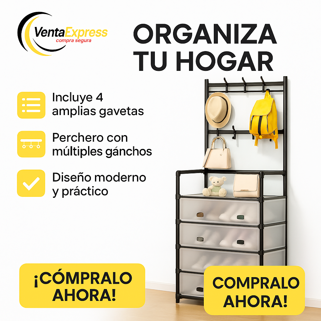 ZAPATERA CON TAPAS Y PERCHERO MULTIFUNCIONAL